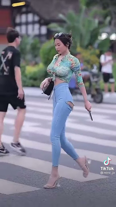 Pretty hot girls walking down the street | bouncing boobs | tight pants