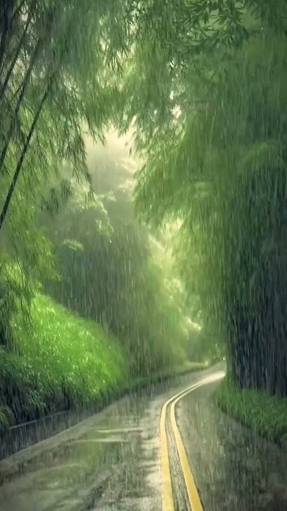 Pemandangan indah jalan raya dengan suasana hujan yang cukup deras